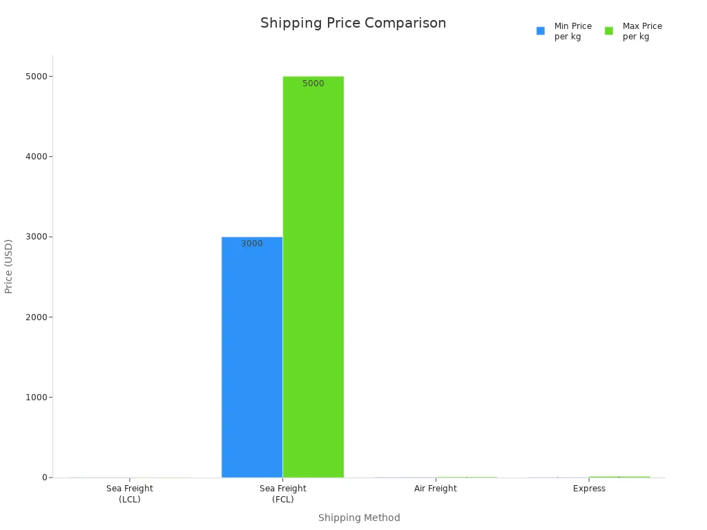 Sea Freight (LCL) | $2-$2.5 per kg | 19-47 days |