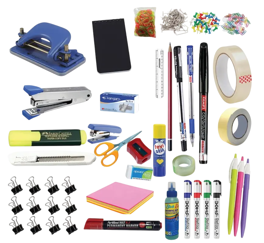 3. Desk Organization: Cable management boxes, pen holders, and monitor risers to keep workspaces clean.