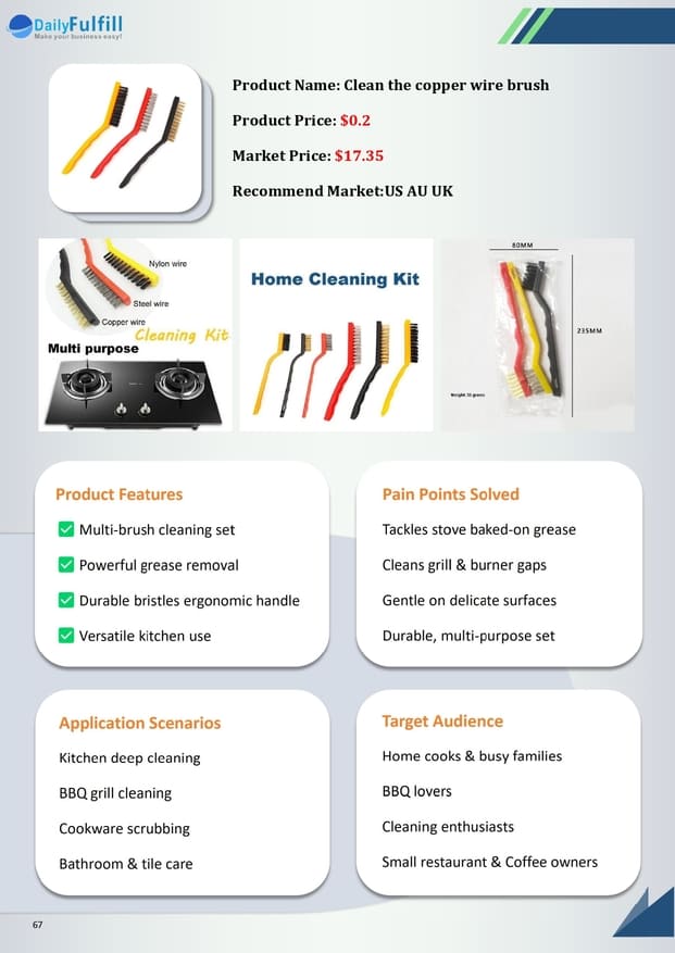 A 3-piece heavy-duty cleaning set with steel, copper, and nylon bristles.