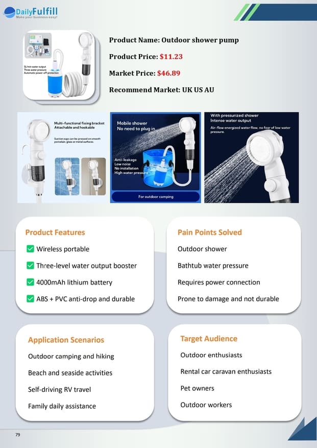 A 4000mAh battery pump for a real shower anywhere in the wild.
