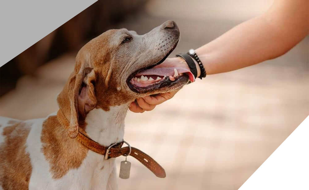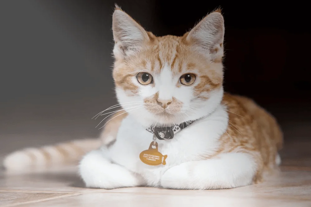 A custom collar has the pet’s name and the owner’s phone number engraved (written) directly on it or on a metal tag.