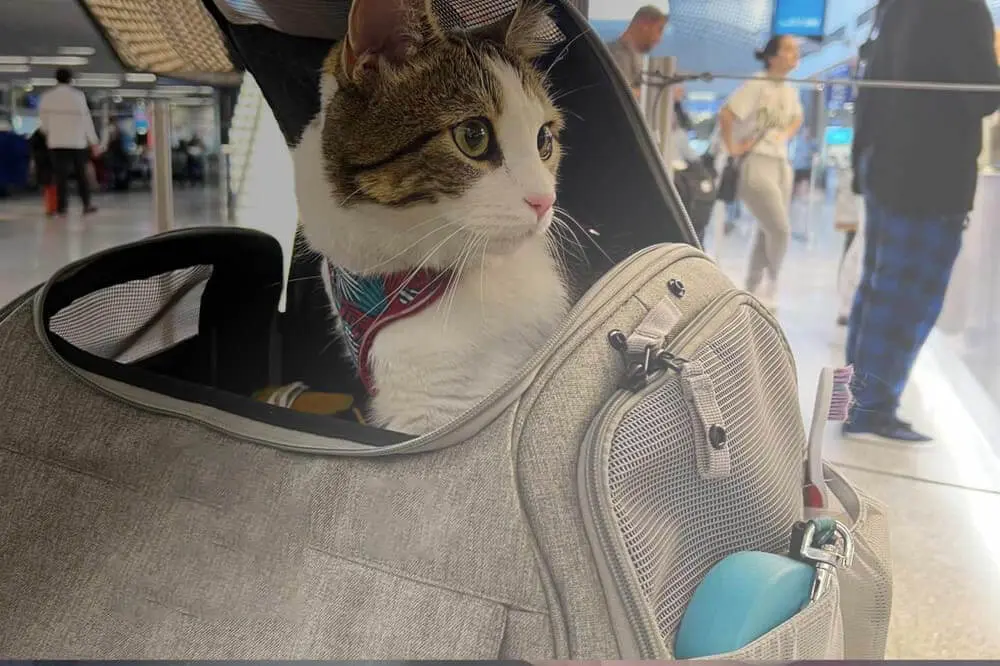 Travel carriers are bags or small crates used to carry cats or small dogs safely on airplanes, in cars, or just walking around the city.
