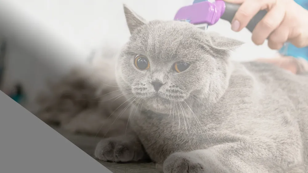 A grooming vacuum is a special brush attached to a small machine that sucks the loose hair right into a cup.